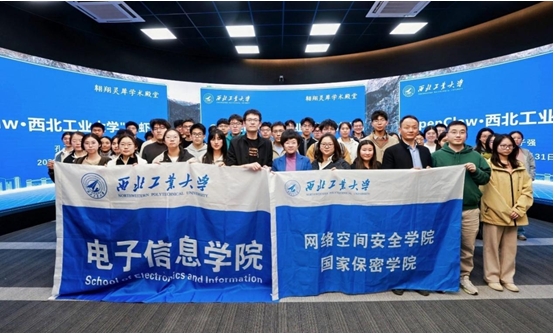 为帮助师生把握人工智能技术前沿,深入理解如何安全使用开源智能体,网络空间安全学院联合电子信息学院,于2026年3月31日晚举办翱翔灵犀学术殿堂“OpenClaw——西北工业大学‘龙虾’局”专场报告会。本次活动特邀高校合作专家、高级工程师孔子强担任主讲嘉宾,围绕OpenClaw的技术原理、云端安全部署及实际应用展开深入分享。电子信息学院党委副书记高敏、网络空间安全学院党委副书记杜瑶,两院学工主管、辅导员代表,及全校报名师生近140人参会。活动由杜瑶主持。